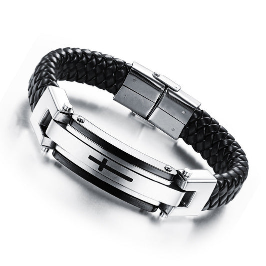 Stainnless Steel Vintage Leather Cross Bracelet - Limited Edition